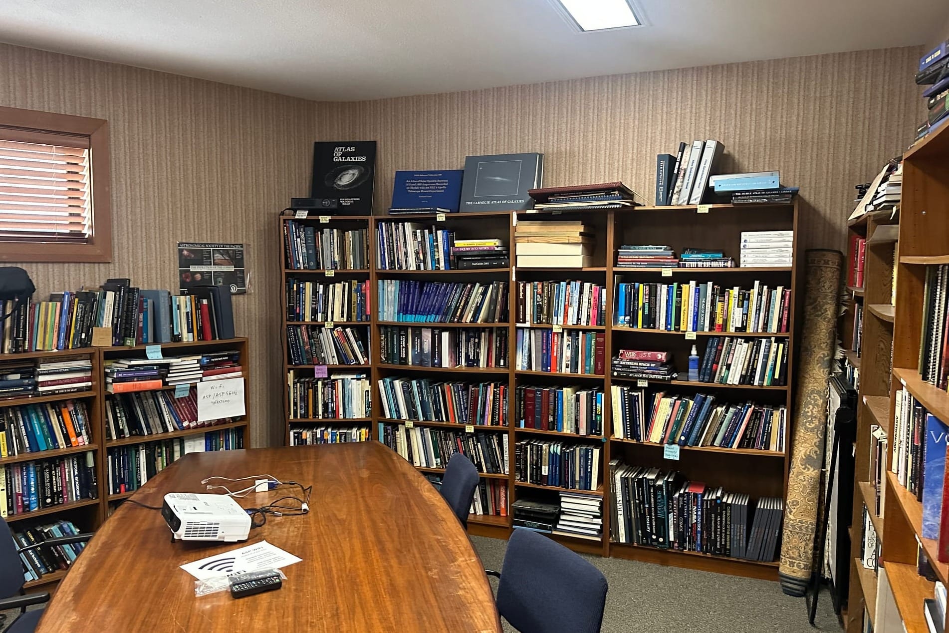 An extensive library, tucked away in one of the back rooms, is bursting with colorful glossaries and coffee-table-sized visual encyclopedias of the Milky Way Galaxy. The library was accumulated through donations. However, the donations slowed to a halt years ago, and many of the books, which still refer to Pluto as a planet, are increasingly dated.