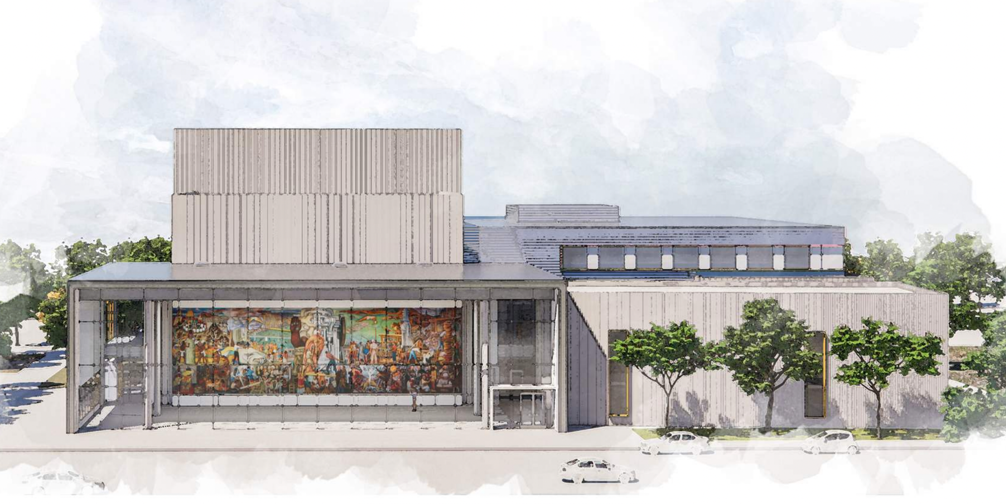 The facility, which will formally break ground on Jan. 22, will quite literally be a gigantic showcase for the college's priceless Diego Rivera fresco, "Pan American Unity." Passersby will be able to see the floor-to-ceiling, 60,000-plus-pound artwork from the street through the building's glass-curtain facade.