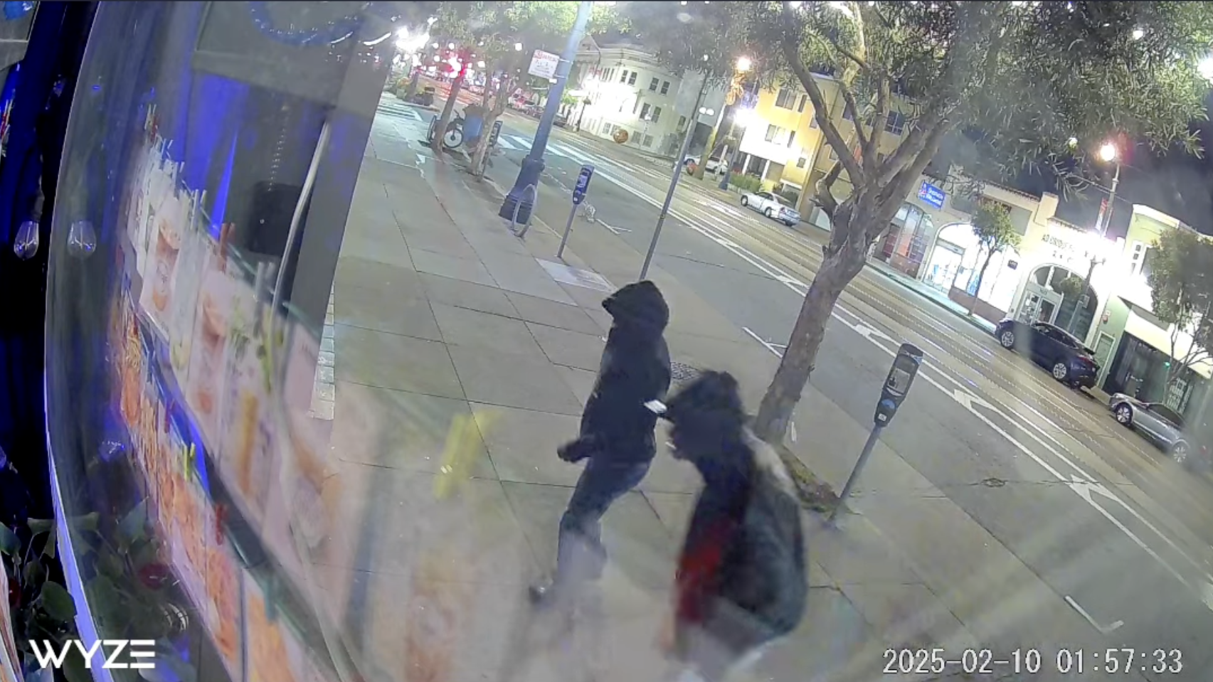 Security camera footage Zhou shared on social media shows the assailants smashing the storefront door at 2 a.m. Unable to enter, the pair left and returned at 4 a.m. with tools to gain entry. They broke the cash register to take $20 in coins and stole five tablets used for online delivery service.