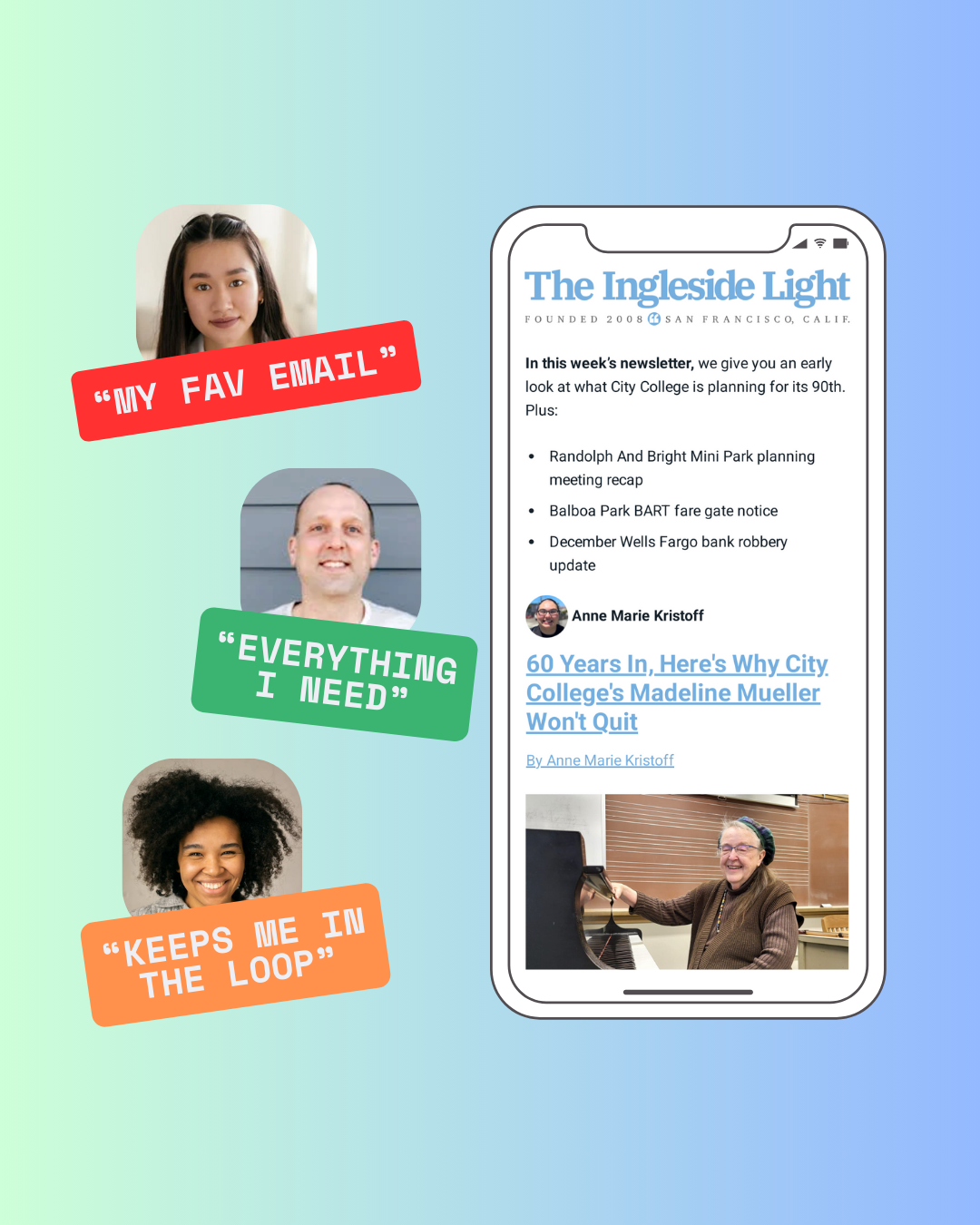 The Ingleside Light continues to evolve as a necessary resource for people in the neighborhood. Good reporting, good editing and good choice of stories.