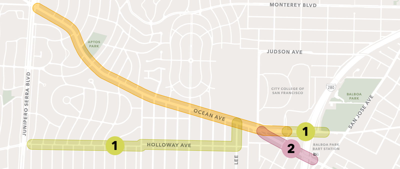 The Holloway Avenue Bike Connectivity project would create an east-west bike route between Balboa Park Station and Junipero Serra Boulevard, primarily using Holloway Avenue.